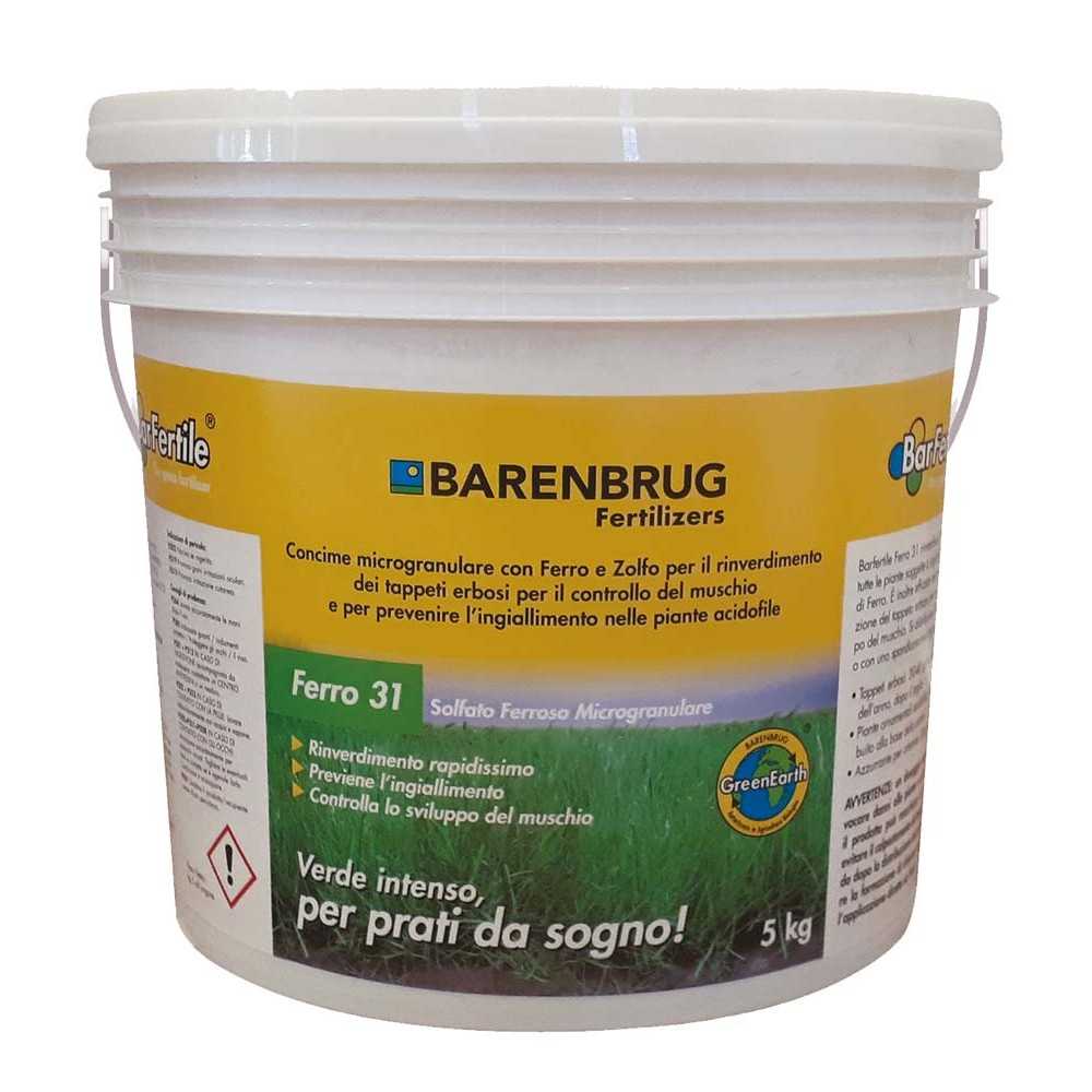 Barfertile Ferro 31 è un concime microgranulare che apporta elevate quantità di ferro e zolfo: favorisce il rinverdimento del tappeto erboso, facilita l’eliminazione del muschio e cura efficacemente la clorosi ferrica di tutte le piante. Consentito in agricoltura biologica.