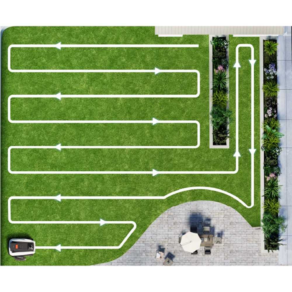 Grazie ad algoritmi avanzati, il sistema traccia automaticamente i percorsi di taglio più efficienti. Si adatta alla forma e alla direzione del prato, massimizza la copertura e riduce curve e sovrapposizioni inutili, adattandosi senza sforzo alle diverse condizioni dell'erba.